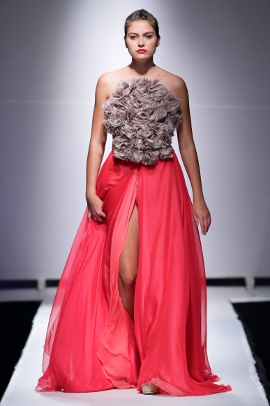 The designer who showcased on day 4 of the Zimbabwe Fashion Week 2013, opted to bring a soft femininity to her pieces with floor length dresses with studded, feathered and flower details, knee length dresses with frills and fabulous models rocking them all the way.
